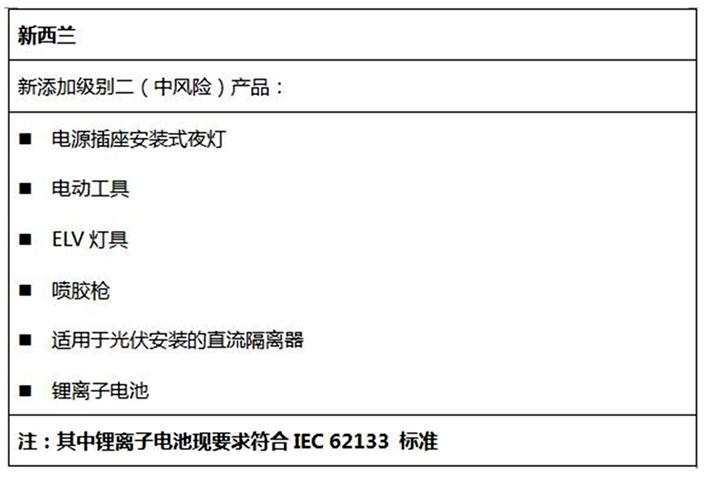 • 单独销售的独立电池组件,在新西兰是强制认证产品,必须获得认证。