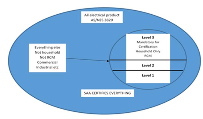 根据现在的RCM系统分类法,将电气设备分为三大类,1类设备,2类设备和3类设备,其中3类设备被定义为高风险设备,3类和2类设备可以在相关法规AS/NZS 4417.2查询,这个分类会随着澳洲标准/法规的更新而变化。现在,针对3类产品必须要求RCM注册, 在SAA Approvals机构颁发SAA证书之后,产品认证信息将自动导入到RCM系统, 方便用户进行RCM注册工作。